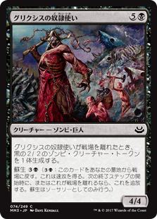| Rules | When Grixis Slavedriver leaves the battlefield, create a 2/2 black Zombie creature token. Unearth (: Return this card from your graveyard to the battlefield. It gains haste. Exile it at the beginning of the next end step or if it would leave the battlefield. Unearth only as a sorcery.) |