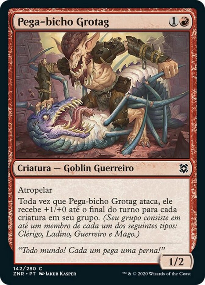 | Rules | Trample Whenever Grotag Bug-Catcher attacks, it gets +1/+0 until end of turn for each creature in your party. (Your party consists of up to one each of Cleric, Rogue, Warrior, and Wizard.) |