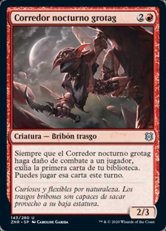 | Rules | Whenever Grotag Night-Runner deals combat damage to a player, exile the top card of your library. You may play that card this turn. |