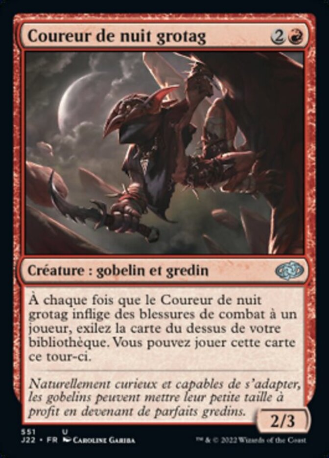 | Rules | Whenever Grotag Night-Runner deals combat damage to a player, exile the top card of your library. You may play that card this turn. |