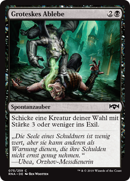 | Flavor | "A debtor's soul has little value, except as a warning to others who might consider defaulting on their loans."-Ubea, Orzhov ministrant |