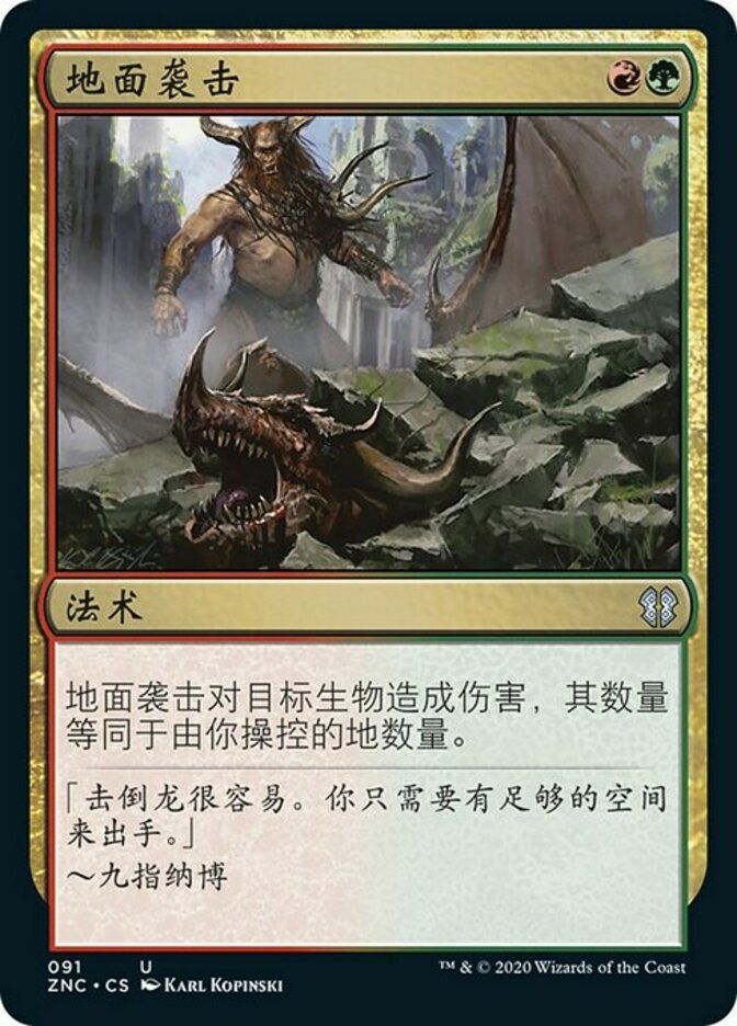 | Rules | Ground Assault deals damage to target creature equal to the number of lands you control. |