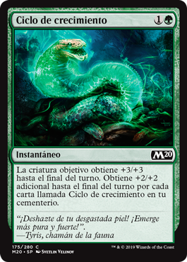 | Rules | Target creature gets +3/+3 until end of turn. It gets an additional +2/+2 until end of turn for each card named Growth Cycle in your graveyard. |