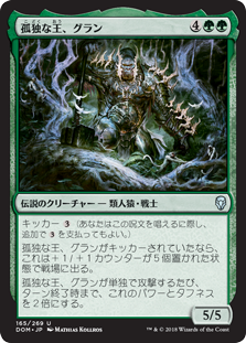 | Rules | Kicker (You may pay an additional as you cast this spell.) If Grunn, the Lonely King was kicked, it enters the battlefield with five +1/+1 counters on it. Whenever Grunn attacks alone, double its power and toughness until end of turn. |