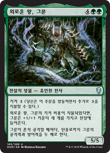 | Rules | Kicker (You may pay an additional as you cast this spell.) If Grunn, the Lonely King was kicked, it enters the battlefield with five +1/+1 counters on it. Whenever Grunn attacks alone, double its power and toughness until end of turn. |
