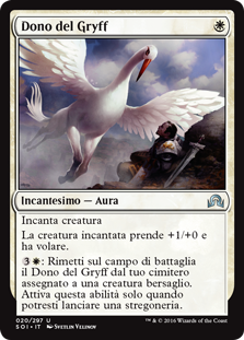 | Rules | Enchant creature Enchanted creature gets +1/+0 and has flying. : Return Gryff's Boon from your graveyard to the battlefield attached to target creature. Activate only as a sorcery. |