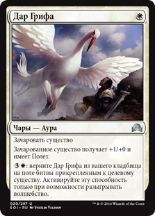 | Rules | Enchant creature Enchanted creature gets +1/+0 and has flying. : Return Gryff's Boon from your graveyard to the battlefield attached to target creature. Activate only as a sorcery. |