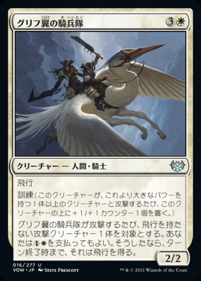 | Rules | Flying Training (Whenever this creature attacks with another creature with greater power, put a +1/+1 counter on this creature.) Whenever Gryffwing Cavalry attacks, you may pay . If you do, target attacking creature without flying gains flying until end of turn. |