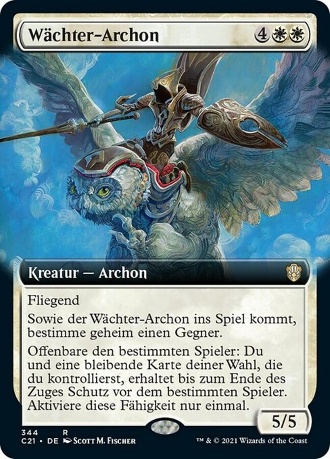 | Rules | Flying As Guardian Archon enters the battlefield, secretly choose an opponent. Reveal the player you chose: You and target permanent you control each gain protection from the chosen player until end of turn. Activate only once. |