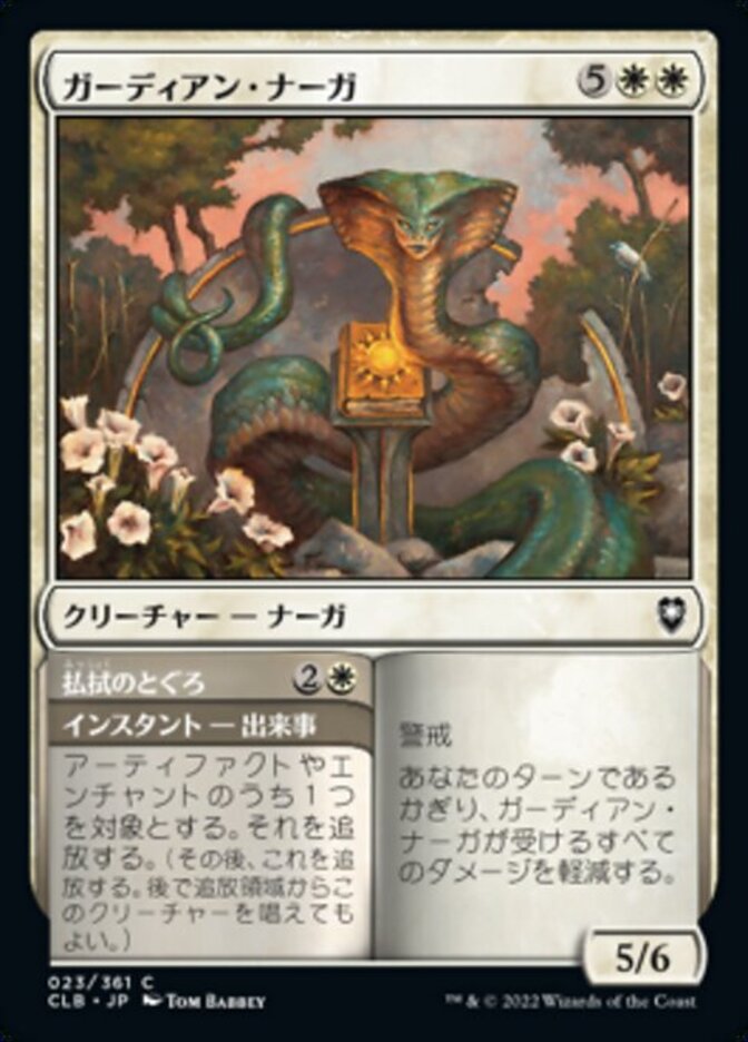 | Rules | Vigilance As long as it's your turn, prevent all damage that would be dealt to Guardian Naga. // Exile target artifact or enchantment. (Then exile this card. You may cast the creature later from exile.) |