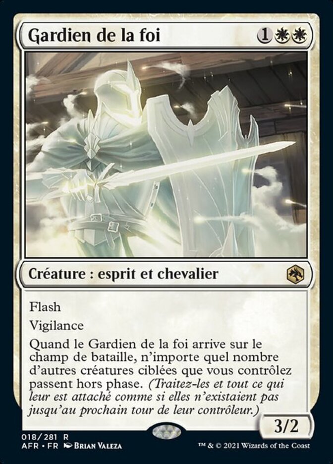 | Rules | Flash Vigilance When Guardian of Faith enters the battlefield, any number of other target creatures you control phase out. (Treat them and anything attached to them as though they don't exist until their controller's next turn.) |