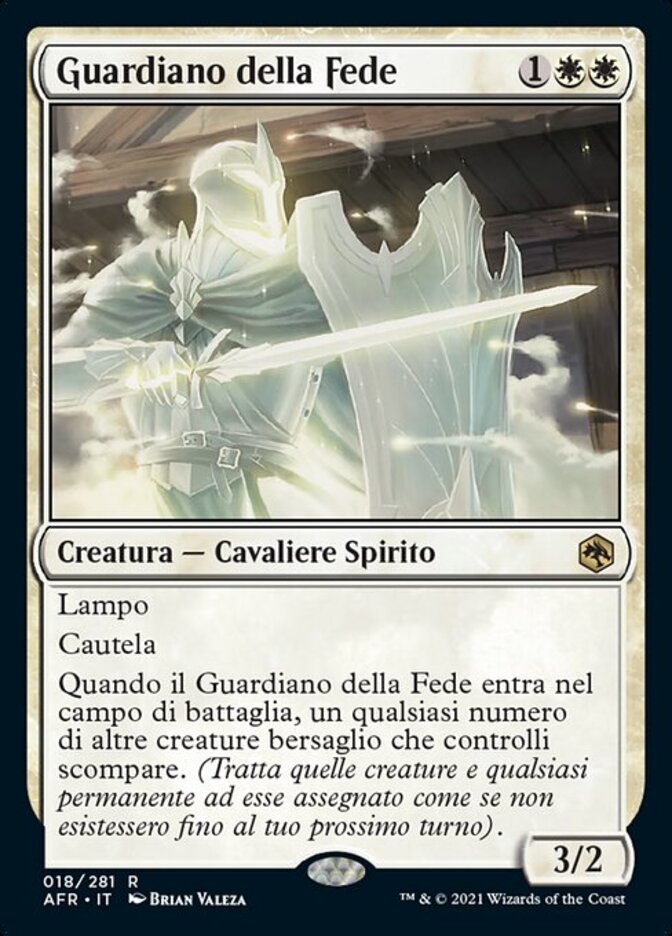 | Rules | Flash Vigilance When Guardian of Faith enters the battlefield, any number of other target creatures you control phase out. (Treat them and anything attached to them as though they don't exist until their controller's next turn.) |