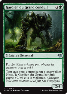 | Rules | Reach (This creature can block creatures with flying.) As long as you control a Nissa planeswalker, Guardian of the Great Conduit gets +2/+0 and has vigilance. (Attacking doesn't cause it to tap.) |
