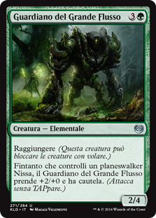 | Rules | Reach (This creature can block creatures with flying.) As long as you control a Nissa planeswalker, Guardian of the Great Conduit gets +2/+0 and has vigilance. (Attacking doesn't cause it to tap.) |