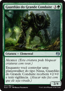| Rules | Reach (This creature can block creatures with flying.) As long as you control a Nissa planeswalker, Guardian of the Great Conduit gets +2/+0 and has vigilance. (Attacking doesn't cause it to tap.) |