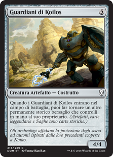| Rules | When Guardians of Koilos enters the battlefield, you may return another target historic permanent you control to its owner's hand. (Artifacts, legendaries, and Sagas are historic.) |