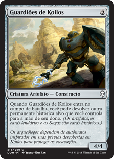 | Rules | When Guardians of Koilos enters the battlefield, you may return another target historic permanent you control to its owner's hand. (Artifacts, legendaries, and Sagas are historic.) |