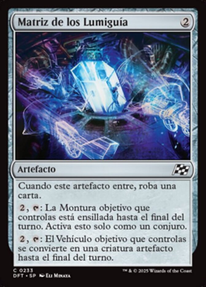 | Rules | When this artifact enters, draw a card. , : Target Mount you control becomes saddled until end of turn. Activate only as a sorcery. , : Target Vehicle you control becomes an artifact creature until end of turn. |