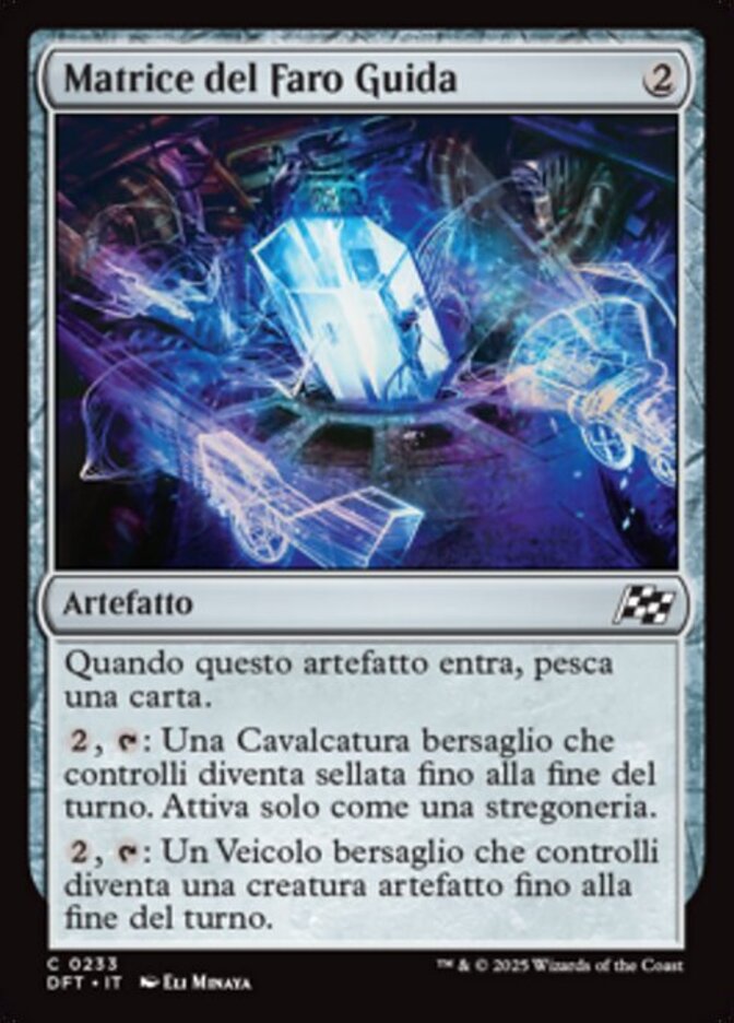 | Rules | When this artifact enters, draw a card. , : Target Mount you control becomes saddled until end of turn. Activate only as a sorcery. , : Target Vehicle you control becomes an artifact creature until end of turn. |