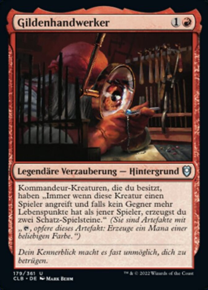 | Rules | Commander creatures you own have "Whenever this creature attacks a player, if no opponent has more life than that player, create two Treasure tokens." (They're artifacts with ", Sacrifice this artifact: Add one mana of any color.") |