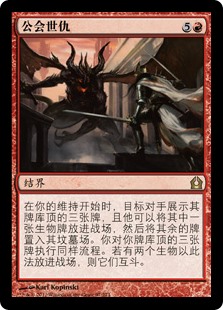| Rules | At the beginning of your upkeep, target opponent reveals the top three cards of their library, may put a creature card from among them onto the battlefield, then puts the rest into their graveyard. You do the same with the top three cards of your library. If two creatures are put onto the battlefield this way, those creatures fight each other. |