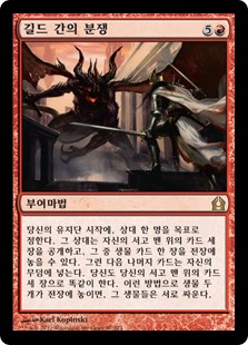 | Rules | At the beginning of your upkeep, target opponent reveals the top three cards of their library, may put a creature card from among them onto the battlefield, then puts the rest into their graveyard. You do the same with the top three cards of your library. If two creatures are put onto the battlefield this way, those creatures fight each other. |
