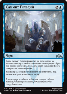| Rules | When Guild Summit enters the battlefield, you may tap any number of untapped Gates you control. Draw a card for each Gate tapped this way. Whenever a Gate enters the battlefield under your control, draw a card. |