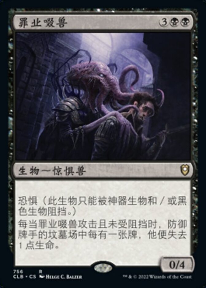 | Rules | Fear (This creature can't be blocked except by artifact creatures and/or black creatures.) Whenever Guiltfeeder attacks and isn't blocked, defending player loses 1 life for each card in their graveyard. |