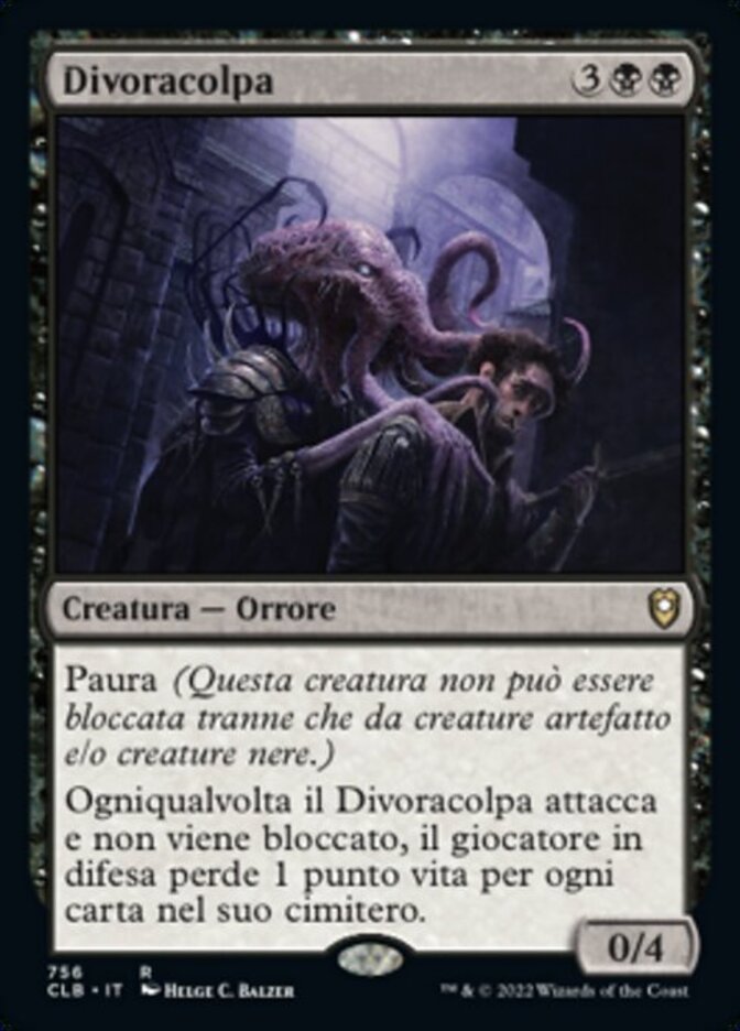 | Rules | Fear (This creature can't be blocked except by artifact creatures and/or black creatures.) Whenever Guiltfeeder attacks and isn't blocked, defending player loses 1 life for each card in their graveyard. |