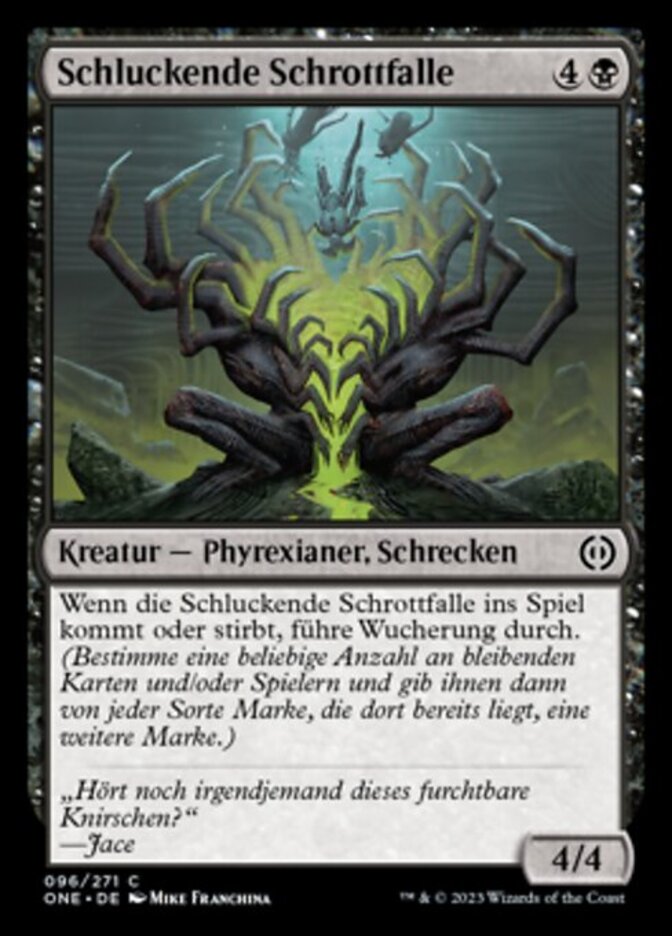 | Rules | When Gulping Scraptrap enters the battlefield or dies, proliferate. (Choose any number of permanents and/or players, then give each another counter of each kind already there.) |