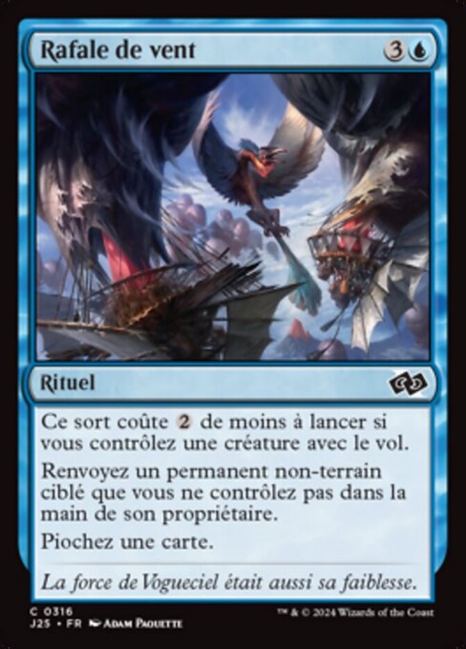 | Rules | This spell costs less to cast if you control a creature with flying. Return target nonland permanent you don't control to its owner's hand. Draw a card. |