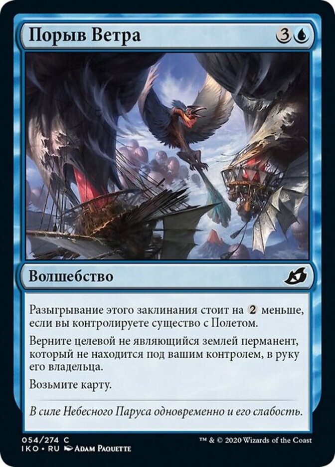| Rules | This spell costs less to cast if you control a creature with flying. Return target nonland permanent you don't control to its owner's hand. Draw a card. |