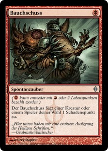 | Rules | ( can be paid with either or 2 life.) Gut Shot deals 1 damage to any target. |