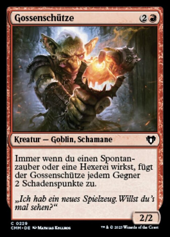 | Rules | Whenever you cast an instant or sorcery spell, Guttersnipe deals 2 damage to each opponent. |