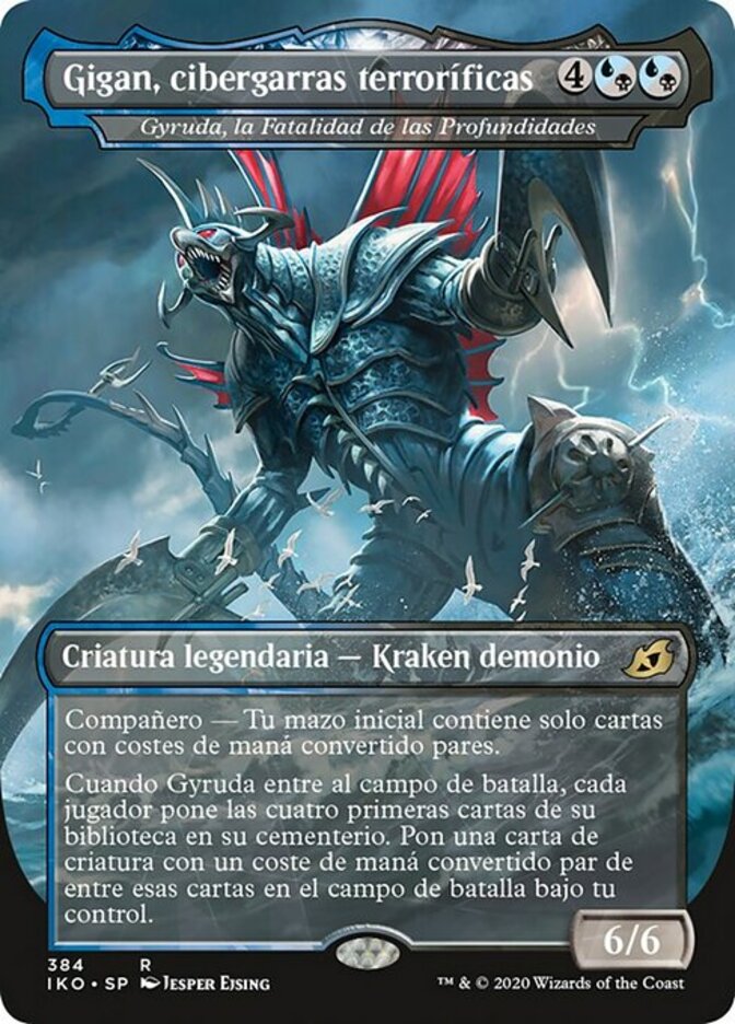 | Rules | Companion — Your starting deck contains only cards with even mana values. (If this card is your chosen companion, you may put it into your hand from outside the game for any time you could cast a sorcery.) When Gyruda enters the battlefield, each player mills four cards. Put a creature card with an even mana value from among the milled cards onto the battlefield under your control. |