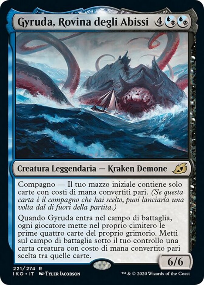 | Rules | Companion — Your starting deck contains only cards with even mana values. (If this card is your chosen companion, you may put it into your hand from outside the game for any time you could cast a sorcery.) When Gyruda enters the battlefield, each player mills four cards. Put a creature card with an even mana value from among the milled cards onto the battlefield under your control. |