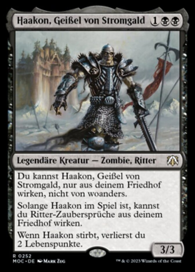 | Rules | You may cast Haakon, Stromgald Scourge from your graveyard, but not from anywhere else. As long as Haakon is on the battlefield, you may cast Knight spells from your graveyard. When Haakon dies, you lose 2 life. |