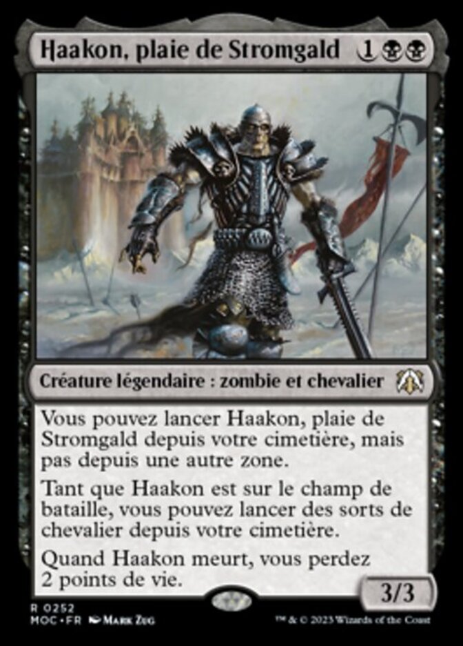 | Rules | You may cast Haakon, Stromgald Scourge from your graveyard, but not from anywhere else. As long as Haakon is on the battlefield, you may cast Knight spells from your graveyard. When Haakon dies, you lose 2 life. |