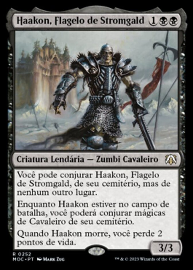 | Rules | You may cast Haakon, Stromgald Scourge from your graveyard, but not from anywhere else. As long as Haakon is on the battlefield, you may cast Knight spells from your graveyard. When Haakon dies, you lose 2 life. |