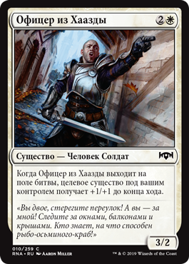 | Rules | When Haazda Officer enters the battlefield, target creature you control gets +1/+1 until end of turn. |