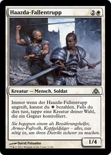 | Rules | Whenever Haazda Snare Squad attacks, you may pay . If you do, tap target creature an opponent controls. |