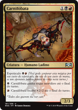| Rules | Spectacle (You may cast this spell for its spectacle cost rather than its mana cost if an opponent lost life this turn.) : Hackrobat gains deathtouch until end of turn. : Hackrobat gets +2/-2 until end of turn. |