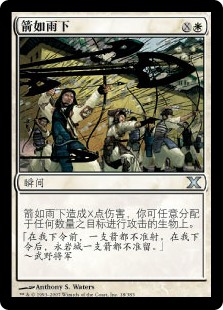 | Rules | Hail of Arrows deals X damage divided as you choose among any number of target attacking creatures. |
