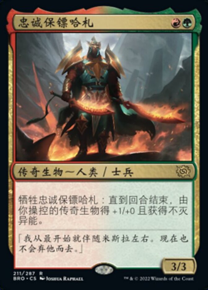 | Rules | Sacrifice Hajar, Loyal Bodyguard: Legendary creatures you control get +1/+0 and gain indestructible until end of turn. |