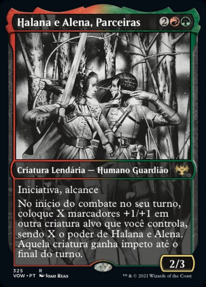 At the beginning of combat on your turn, put X +1/+1 counters on another target creature you control, where X is Halana and Alena's power. That creature gains haste until end of turn.