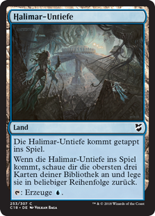 | Rules | Halimar Depths enters the battlefield tapped. When Halimar Depths enters the battlefield, look at the top three cards of your library, then put them back in any order. : Add . |