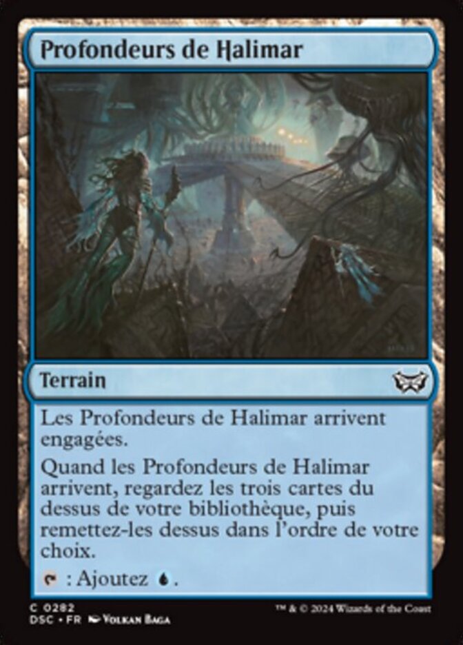 | Rules | Halimar Depths enters the battlefield tapped. When Halimar Depths enters the battlefield, look at the top three cards of your library, then put them back in any order. : Add . |
