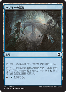 | Rules | Halimar Depths enters the battlefield tapped. When Halimar Depths enters the battlefield, look at the top three cards of your library, then put them back in any order. : Add . |