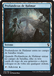 | Rules | Halimar Depths enters the battlefield tapped. When Halimar Depths enters the battlefield, look at the top three cards of your library, then put them back in any order. : Add . |