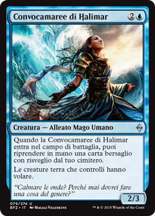 | Rules | When Halimar Tidecaller enters the battlefield, you may return target card with awaken from your graveyard to your hand. Land creatures you control have flying. |